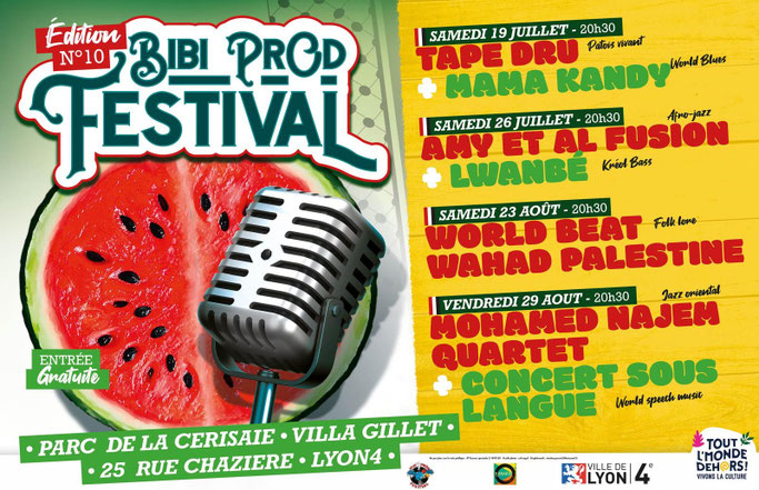 Cet été, le Bibi Prod Festival fête sa 10e édition et vous invite à une série de concerts gratuits, en plein air, au cœur du magnifique Parc de la Cerisaie. Musiques du monde, créations contemporaines, traditions revisitées et voix singulières : quatre soirées pour découvrir, vibrer, partager et ouvrir nos imaginaires. Porté par l’association Karakib, le festival propose une programmation fidèle à son engagement.